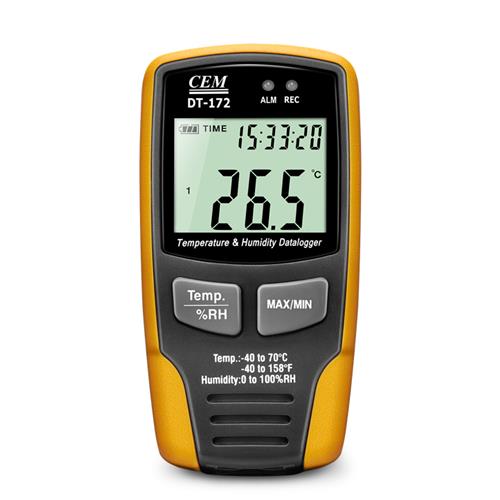 - Cem DT 172 ısı ve nem kayıt cihazının kullanıcı seçimli alarmı vardır. Alt ve üst limitlere görsel alarm kurabilirsiniz.