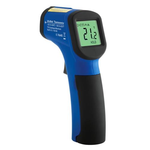 TFA 31.1134.06 ScanTemp 330 kızıl ötesi termometre Yüzey sıcaklığının temassız ölçümü için, lazer hüzmeli (tam olarak hedef alanını gösterir), ölçüm süresi: 1 saniye, anlık ve en yüksek sıcaklık, arka ışık, doğruluk 0°C...+330°C de ±2°C, ölçüm mesafesi/leke boyutu 12:1